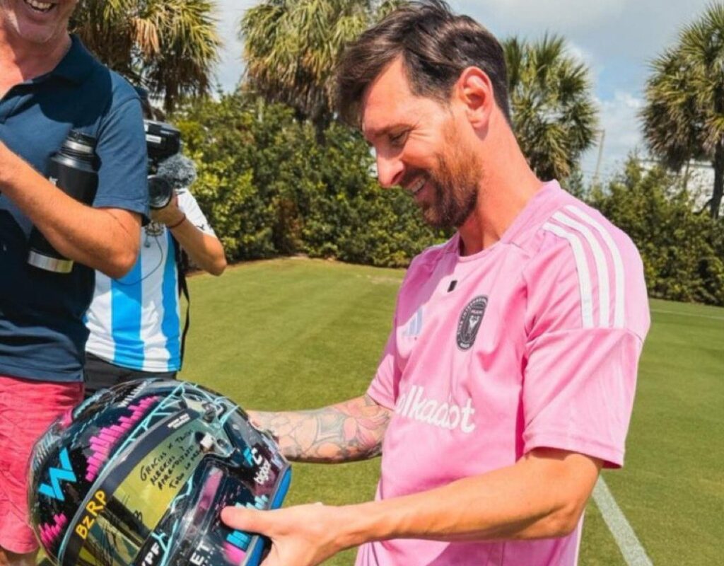 Franco Colapinto le envió como obsequio a Lionel Messi el casco de la escudería Wiliiams con el que en la temporada pasada había